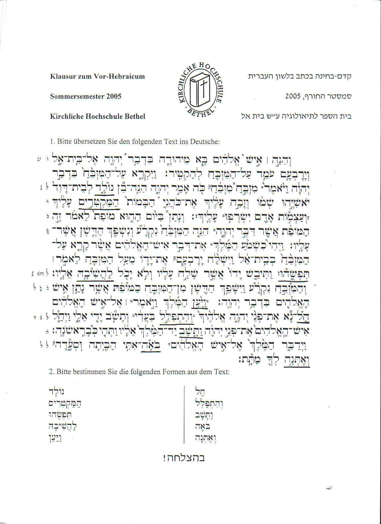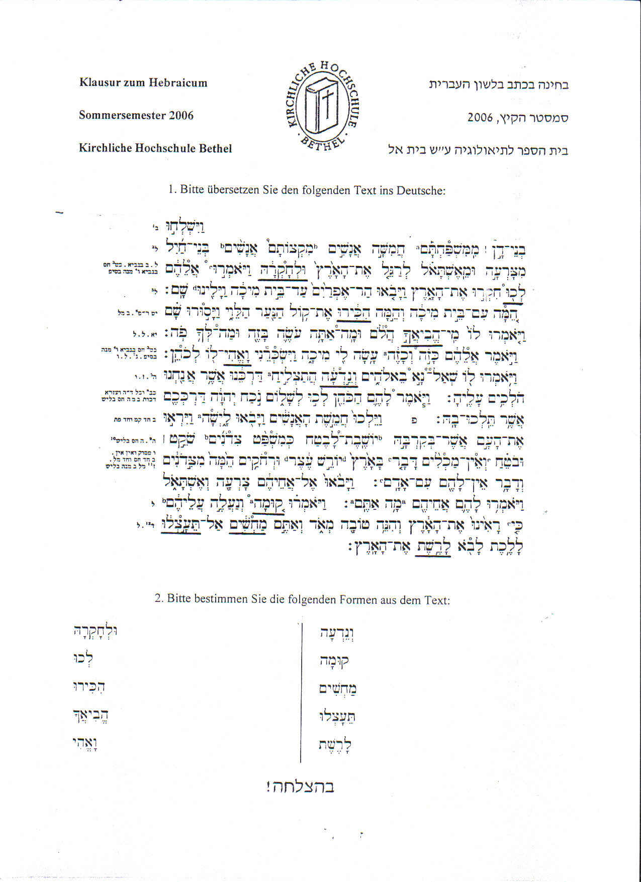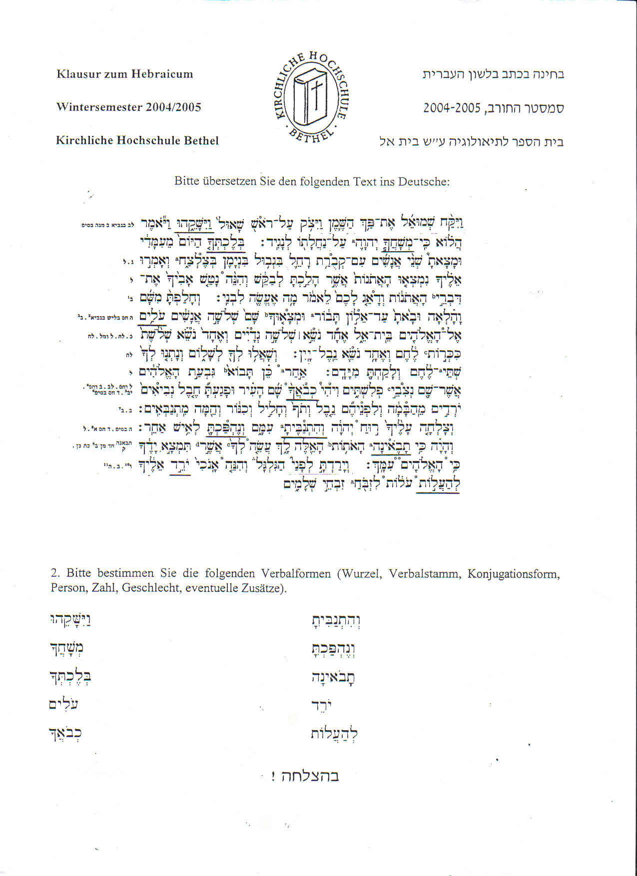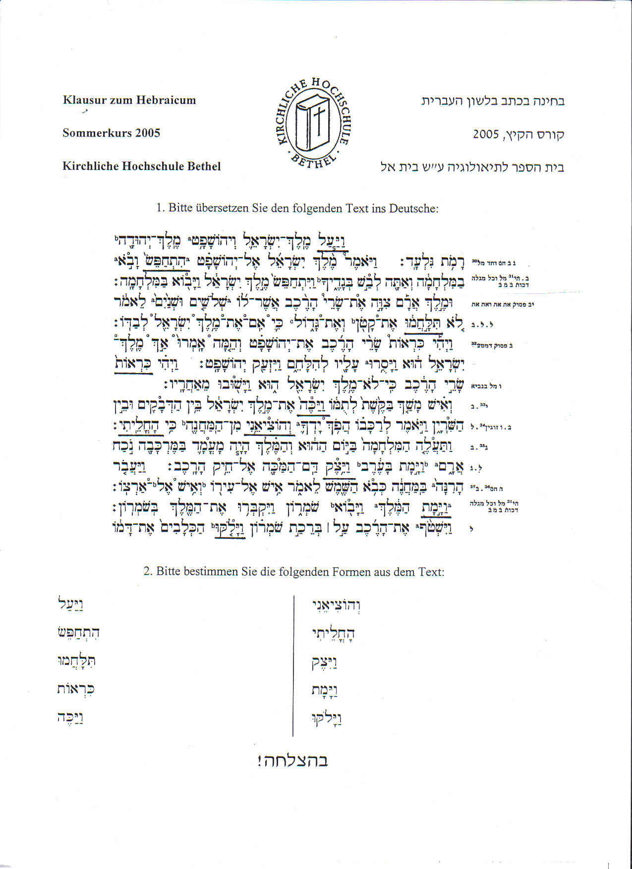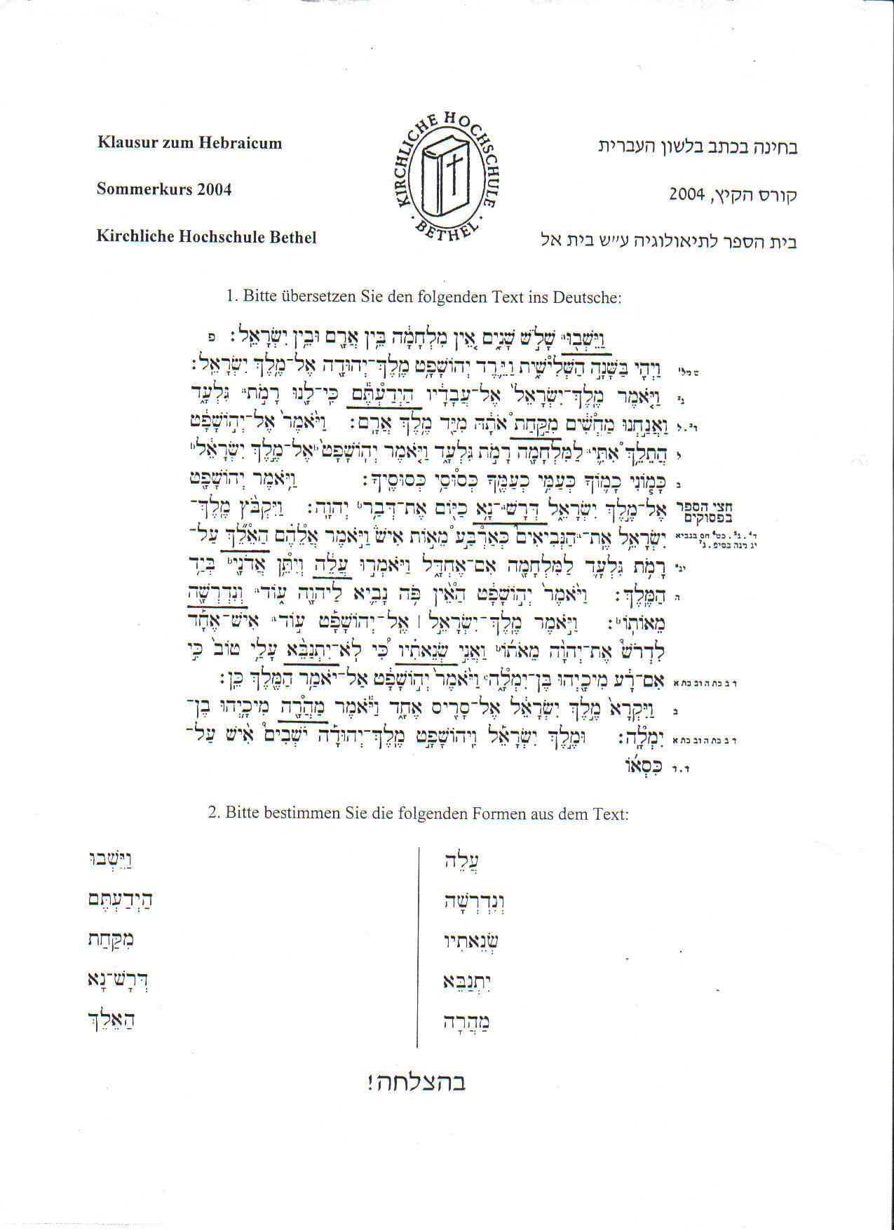 Klausuren vom Betheler Hebraicum zum Üben